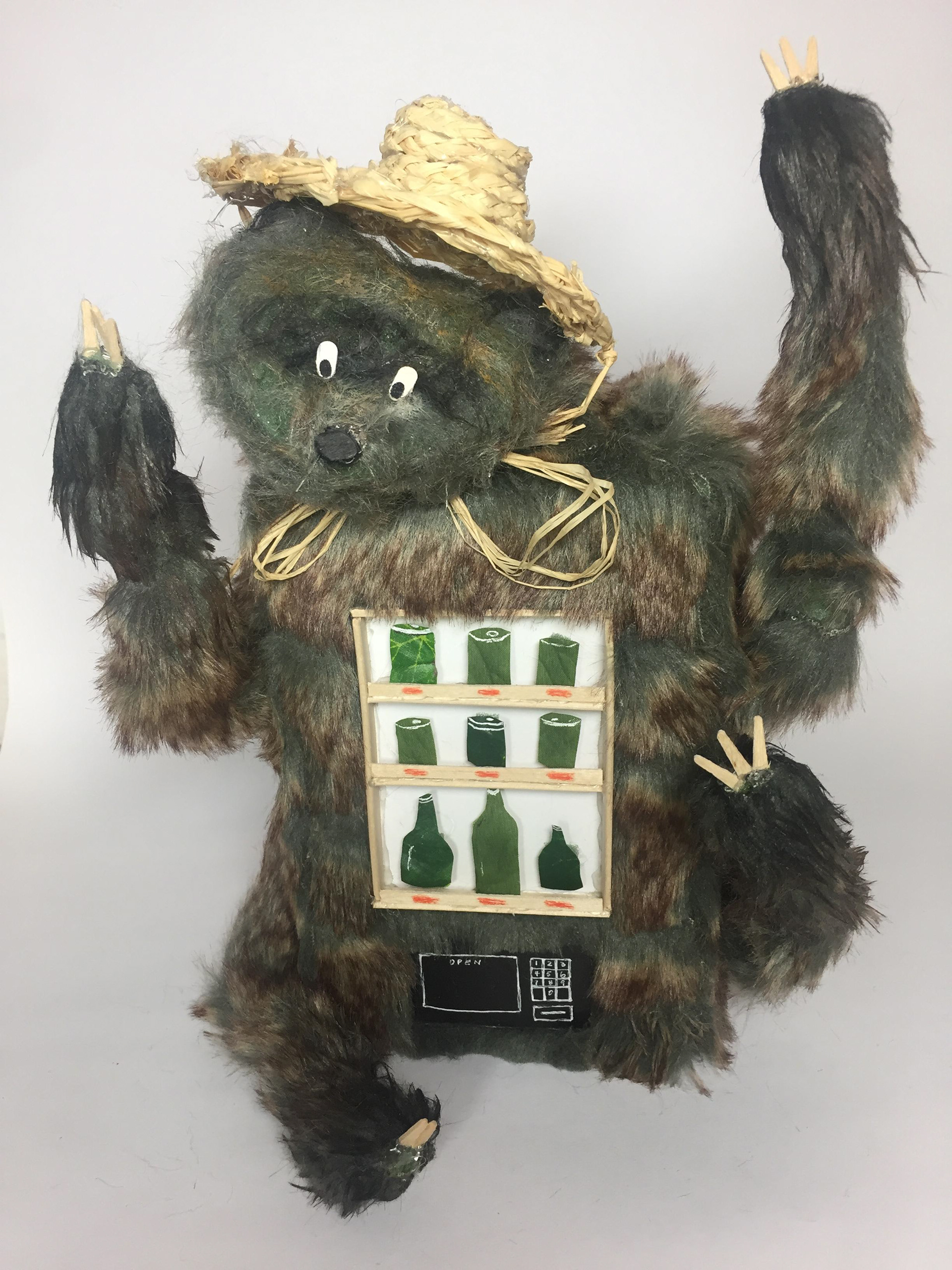 Based on the Japanese mythical creature, Tanuki. In traditional stories, he is a raccoon that is able to shape shift into a teapot. I created a modern version that can shape shift into a vending machine.